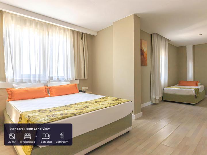 Family sobe ( 45 m2 , dve spavaće sobe sa vratima ili kliznim vratima između , sa francuskim ležajem u jednoj sobi i dva single ležaja u drugoj , jedno kupatilo , max 4 osobe )