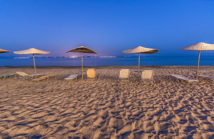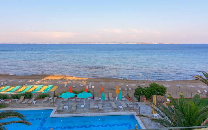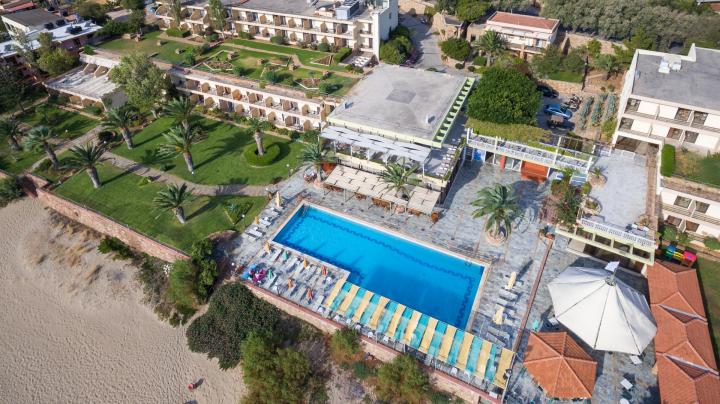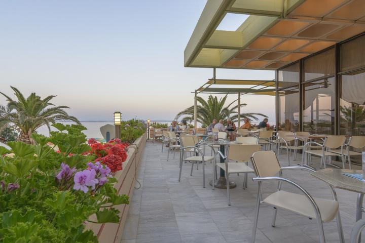 Restoran je smešten u prizemlju, pored bazena i prelepih vrtova, glavni restoran ima neometani pogled na Egejsko more. Služi bogat internacionalni doručak na bazi švedskog stola, a tokom dana možete uživati u večeri po narudžbini ili u švedskom stolu sa ukusima grčke i mediteranske kuhinje.