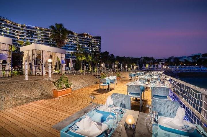 Glavni restoran, 5 a la carte restorana, 8 barova, otvoreni i zatvoreni bazeni za odrasle i decu, awua park, teretena, tursko kupatilo, sauna, odbojka na plaži, teniski tereni, stoni tenis, mini fudbal, gimnastika, zabavni programi i animacija tokom dana, takmičenja kod bazena i na plaži, večernji šou programi, mini klub za decu (4-12 god.), igralište za decu, mini diskoteka; Wi-Fi u celom hotelu je bez doplate.